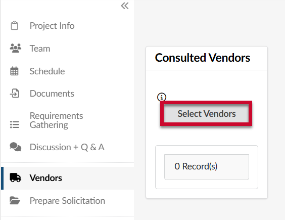 - Click Save & Close to close the Browse Vendors window. The Vendors are listed in the Consulted Vendors section.