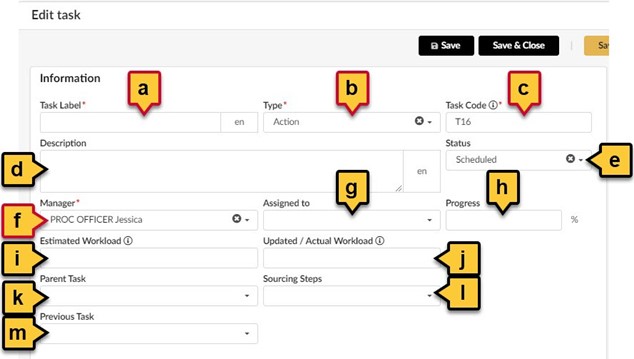 - Task Label (*): Enter a label for your new task in this field.