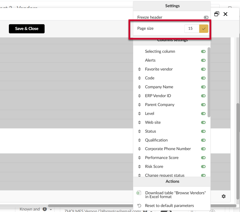 - In the Grid page size field enter a number (150 max) to see that many results listed in the Browse Vendors window and click the checkmark to the right of the field.