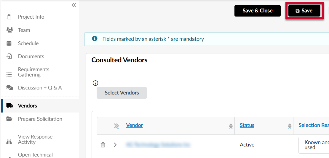 - Close the Browse Vendors window. The Vendors are listed in the Consulted Vendors section.