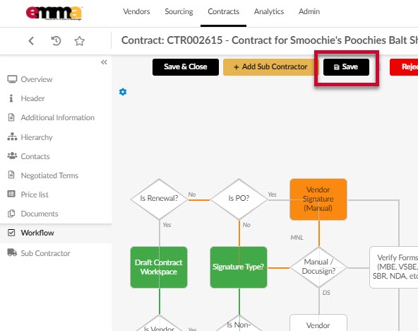 - Click Save at the top of the Workflow page and continue as needed through the workflow.