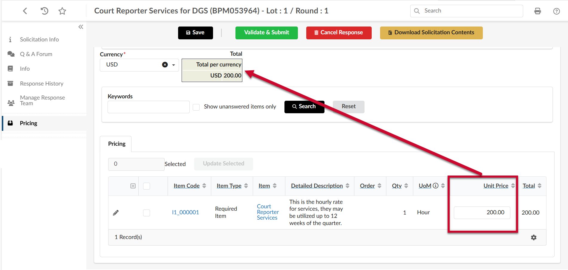 - Use the Search fields such as Keywords, Category, and Status to search for the solicitation.