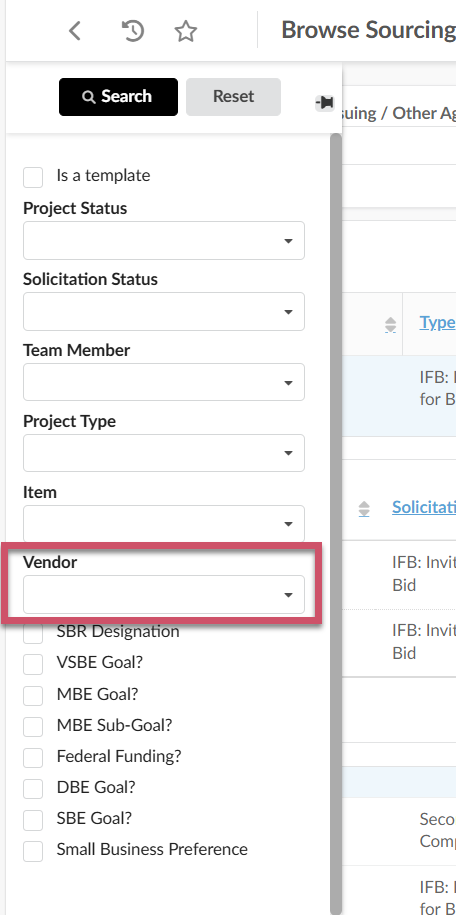The Vendor field lets you display sourcing projects based on the Vendor associated with the sourcing project.